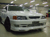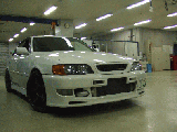 | 就業後、いつものガレージに入庫したちぇい。傷ついたグリルは就業時間中にパテ成型と塗装作業を施す。 | |