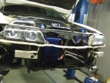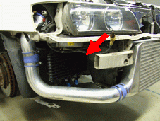 取り付け場所は純正インタークーラーのあった場所。純正のインタークーラーがあっただけに、冷却系の場所としてはお墨付き。 |