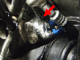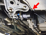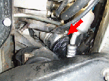 新しいエレメントの位置はミッション横。ここなら、アンダーカバーを外すことなく、フィルター交換時に周りの部品をオイルで汚す事なく作業できます♪ |
