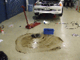 やってしまいました。。。(泣)入れたてのオイルでオアシスを創造してしまいました。この除去作業に2時間余り。オイルもなくなり、この日は自走不能に。高級なフラッシングをしてしまいました。。。原因は移動キットに付属されていたエコノフィッティングの破損。何でー!?しかも、重要なミスを犯した事に気付きました。メクラをしたサーモスタット。高温になったら、フィルター側には流れないんじゃ?サーモが効いた時、クーラー側の通路が開くだけではなく、フィルター側が同時に閉まるのでは??と、なると、フン詰まりです。 |