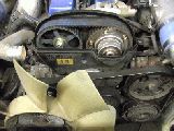 タイミングベルトを外す。ついでにウォーターポンプなどの点検をしたけど、一切のにじみ無し!!すごい! |