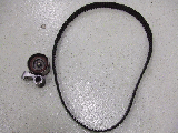 交換したタイミングベルトとテンショナー。テンショナーはまだまだ使えそうだったぞ。 |