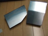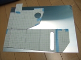 | こんな感じ♪上にあるのが、側面になる板。下が上面になる板です。側面用の板にくり抜いた長細い穴は、クーラントの残量を見る穴です。 | |