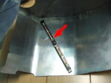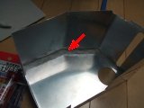 | カバーが出来上がったら、これを一度純正のリザボアに合わせ、残量のロアレベルとアッパレベルの位置を見つけ出して画像のように小さい切りかきを付けます。 | |