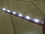 | カバーの裏に付けたお手製LEDテープ。スモールランプに割り込ませたんですけど、何の為に貼り付けたかと言うと・・・、 そうです!夜の暗い場所でも、残量の確認が出来るんです!しかも、カバーの下から光が漏れて、間接照明のように!!! 今回は、コスト、パフォーマンス共に大満足!大自己満足! |